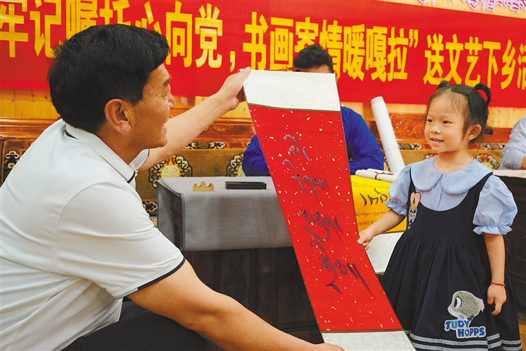 近日,林芝市文聯(lián)在巴宜區(qū)林芝鎮(zhèn)嘎拉村開展“牢記囑托心向黨 書畫寄情暖嘎拉”送文藝下鄉(xiāng)活動(dòng)。書法家們揮毫潑墨,將飽含著美好祝福與深厚情誼的書法作品贈(zèng)送給村民;美術(shù)家和攝影家則帶來記錄嘎啦村發(fā)展變遷、村民們幸福生活的作品。