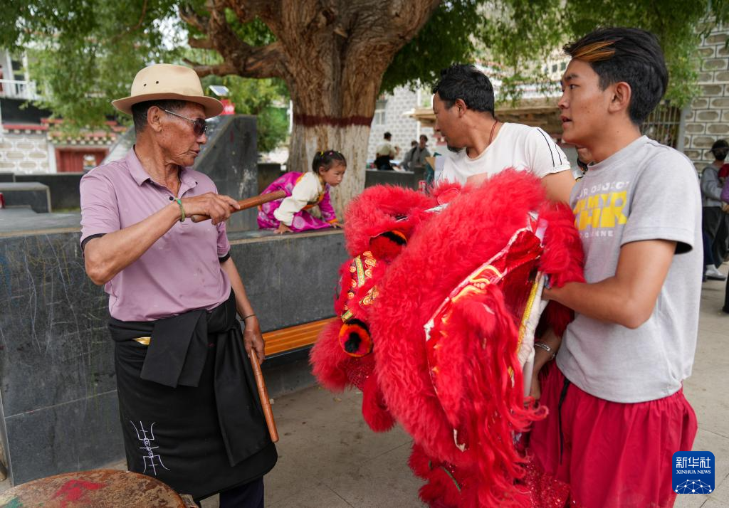西藏昌都市洛隆縣曾是茶馬古道上的重要驛站,也是漢藏交往的重要通道。在洛隆縣碩督鎮(zhèn),當(dāng)?shù)匕傩諏岚臀?、鍋莊舞等西藏特色民族舞蹈元素融入早年傳入當(dāng)?shù)氐奈瑾{中,形成一種兼具漢藏特色的表演形式——碩督獅子舞。2024年,碩督獅子舞被列入西藏自治區(qū)非物質(zhì)文化遺產(chǎn)名錄。