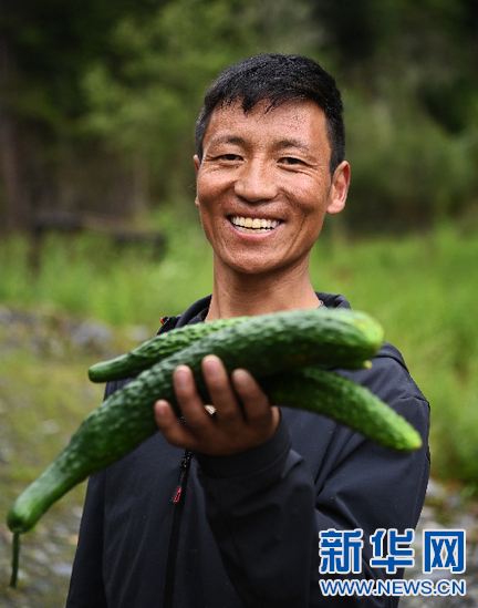 7月30日,當(dāng)?shù)厝罕娬故敬笈锢锊烧狞S瓜,這些蔬菜將通過(guò)供銷社銷往各地。新華社記者 普布扎西 攝