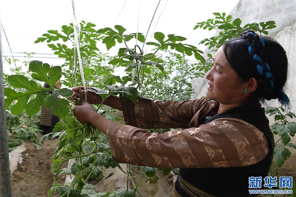 2019年,在政府援藏資金的幫扶下,姐妹倆通過土地置換在彭倉村建成13個溫室大棚,經(jīng)過引進(jìn)果蔬新品種和技術(shù)積累,實(shí)現(xiàn)大棚種植收入大幅提升。同年8月,格桑旺姆申領(lǐng)了大學(xué)生創(chuàng)業(yè)補(bǔ)貼資助,兩人又在白朗縣城開了一家蔬菜銷售店。姐姐管理大棚、培訓(xùn)雇工,妹妹負(fù)責(zé)果蔬銷售和店鋪運(yùn)營,兩人密切合作,事業(yè)蒸蒸日上。