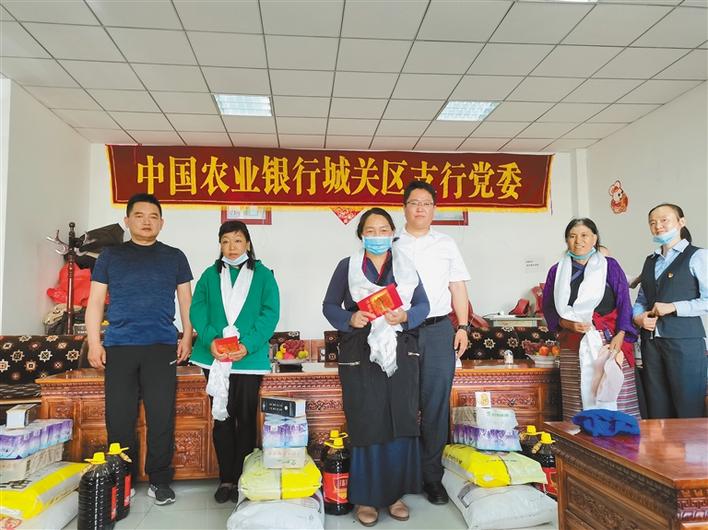 農(nóng)行城關(guān)區(qū)支行與木如居委會(huì)貧困戶開展結(jié)對(duì)幫扶,并為他們送去了慰問品和慰問金。