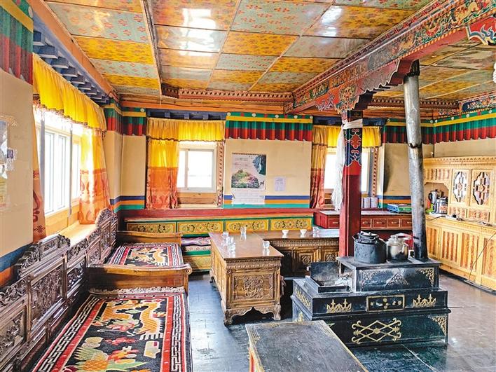 次仁玉珍今年60歲,家里有兩個女兒。走進(jìn)次仁玉珍家,干凈的小院、寬敞的房子、屋內(nèi)各式家具家電一應(yīng)俱全?!耙郧?,家里的房子又小又破,只有幾十平方米,每逢下雨,屋子還漏雨。2016年,政府幫我們翻修擴(kuò)建了房子,我們自己只出了5000元,現(xiàn)在的新房有250平方米左右?!贝笈畠捍稳恃虢鹫f。