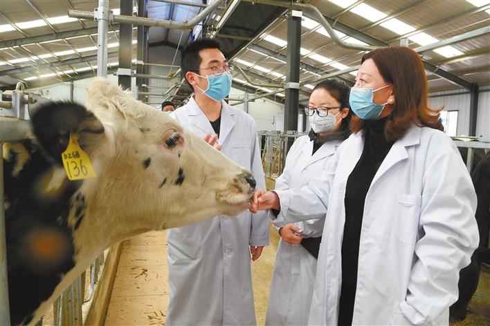 圖為達(dá)孜區(qū)高標(biāo)準(zhǔn)良種奶牛養(yǎng)殖示范中心的工作人員在巡檢牛場(chǎng)。 記者 李洲 攝