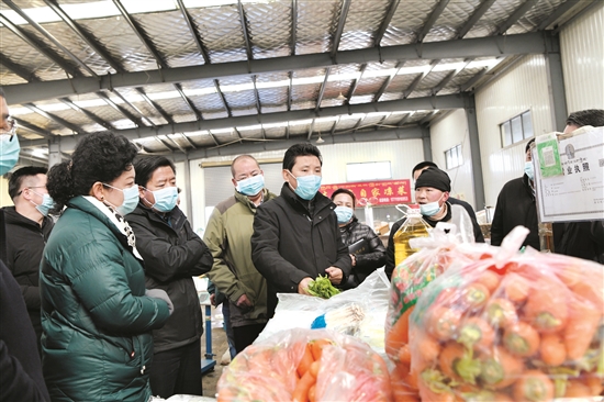 1月6日上午,市委副書記、市長(zhǎng)果果前往城關(guān)區(qū)智昭產(chǎn)業(yè)園調(diào)研。圖為果果在城關(guān)區(qū)智昭產(chǎn)業(yè)園區(qū)農(nóng)貿(mào)批發(fā)市場(chǎng)了解市場(chǎng)物資保供及凍儲(chǔ)物資儲(chǔ)備情況。[詳細(xì)] -