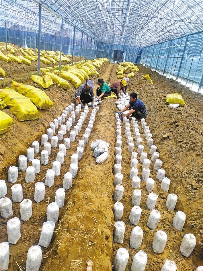 尼瑪創(chuàng)新實行由農(nóng)場進行統(tǒng)一培訓(xùn);由農(nóng)場統(tǒng)一提供菌袋;由農(nóng)場統(tǒng)一進行種植管理技術(shù)指導(dǎo);由農(nóng)場統(tǒng)一收購成熟靈芝帶動農(nóng)牧民群眾增收的“四個統(tǒng)一”經(jīng)營模式,2020年,農(nóng)場負責(zé)為米林縣所屬4個村集體100余棟溫室大棚提供靈芝菌種40余萬袋,同時,為降低各村種植基地產(chǎn)銷風(fēng)險,在靈芝成熟后負責(zé)統(tǒng)一收購,共計兌現(xiàn)120余萬元靈芝收購款和土地流轉(zhuǎn)租金,有效促進當(dāng)?shù)厝罕娫霎a(chǎn)增收。