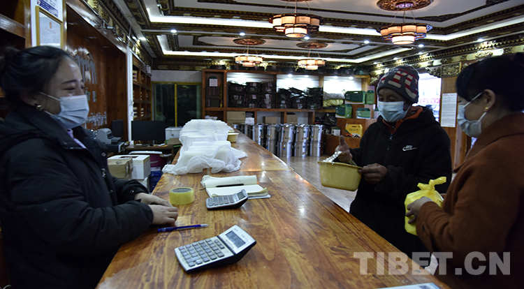 圖為嘎?tīng)柕律釁^(qū)銷(xiāo)售總店里的收奶員巴桑 攝影:王媛媛
