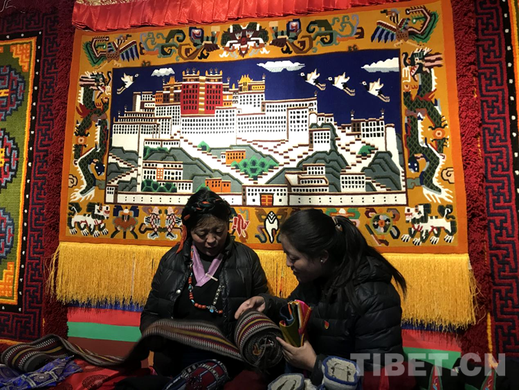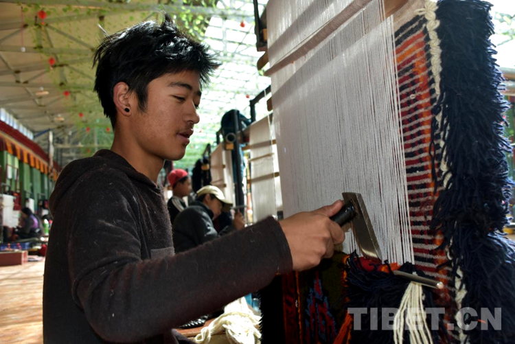 “剛到合作社每天工資160元,一個月下來就有小四千,一年收入妥妥的超3萬元?!闭f話間,巴頓也沒有歇下手中的活計。穿桿結(jié)扣,勤勞的雙手一直忙碌著,在合作社6年多,他已經(jīng)比較熟練地掌握了卡墊織法、色彩以及紋樣。如今,卡墊接活都是以承包方式,往往供不應(yīng)求,一家人住在裝修一新的藏式小院里,妻子現(xiàn)在也在參加合作社新員工培訓(xùn),四個孩子都進了公立學(xué)校讀書,享受了義務(wù)教育免費“三包”政策。