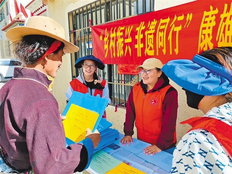 圖為仁布縣康雄鄉(xiāng)文化站的工作人員向群眾講解非遺知識。記者 汪純 攝