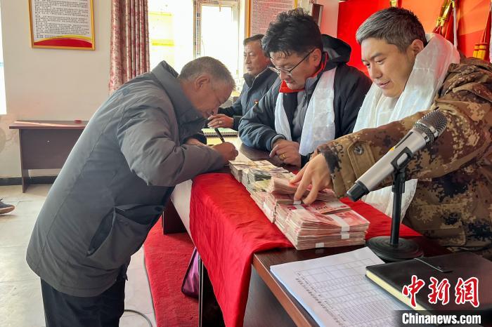 圖為2月19日,西藏那曲安多縣帕那鎮(zhèn)申格卡崗村牧民分紅?!≈袊F路青藏集團(tuán)有限公司 供圖
