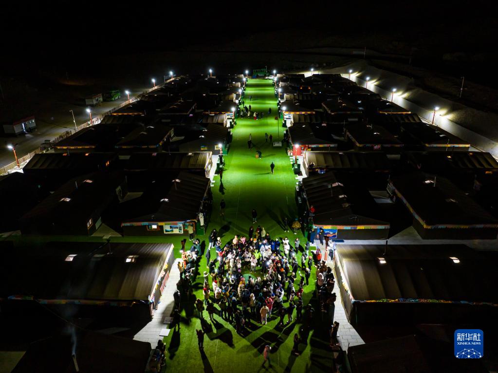這是夜晚的珠峰游客大本營(yíng)帳篷旅館(5月16日攝,無(wú)人機(jī)照片)。新華社記者 孫非 攝