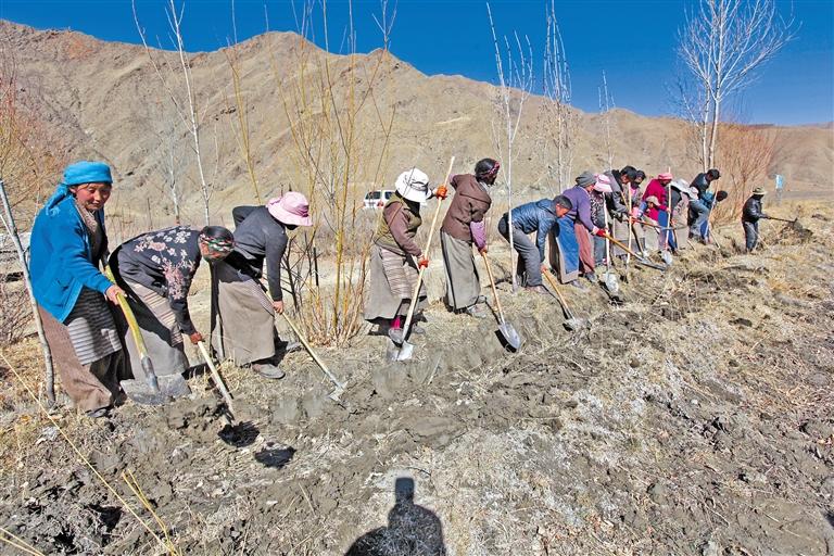 圖為山南市瓊結縣下水鄉(xiāng)的群眾在種植樹苗。(資料圖片)記者 次旺 洛桑 李洲 唐斌 攝