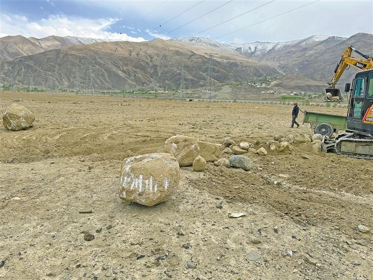 洛珠達瓦打開手機中的相冊,他指著挖石頭的視頻說:“雅魯藏布江沿岸土地中的石頭太多了,有些石頭重達幾噸,根本無法種植任何農作物。為了撿石頭、挖石頭,我們每天從村里雇10多個人來干活?!?/p>