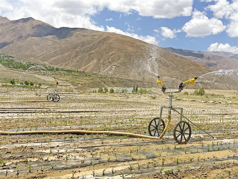 “這些土地,過去沙化太嚴重,無法保存水分,我們經過不斷的翻耕改良后,才有了目前的這850畝土地?!蔽鞑厍睾剔r業(yè)綜合開發(fā)有限公司工作人員洛珠達瓦介紹。