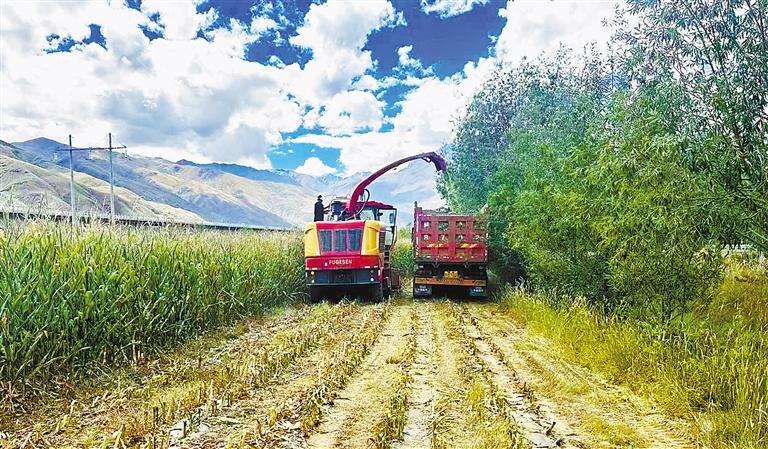 走在雅魯藏布江沿岸,成片的玉米地呈現(xiàn)眼前,讓人意想不到的是,半年前這里還是一片荒地?!拔覀兘衲攴N植玉米850多畝,其中,600多畝的玉米長勢良好,預計每畝可收玉米飼草2噸以上?!甭逯檫_瓦說。目前,玉米秸稈已陸續(xù)開始收割。
