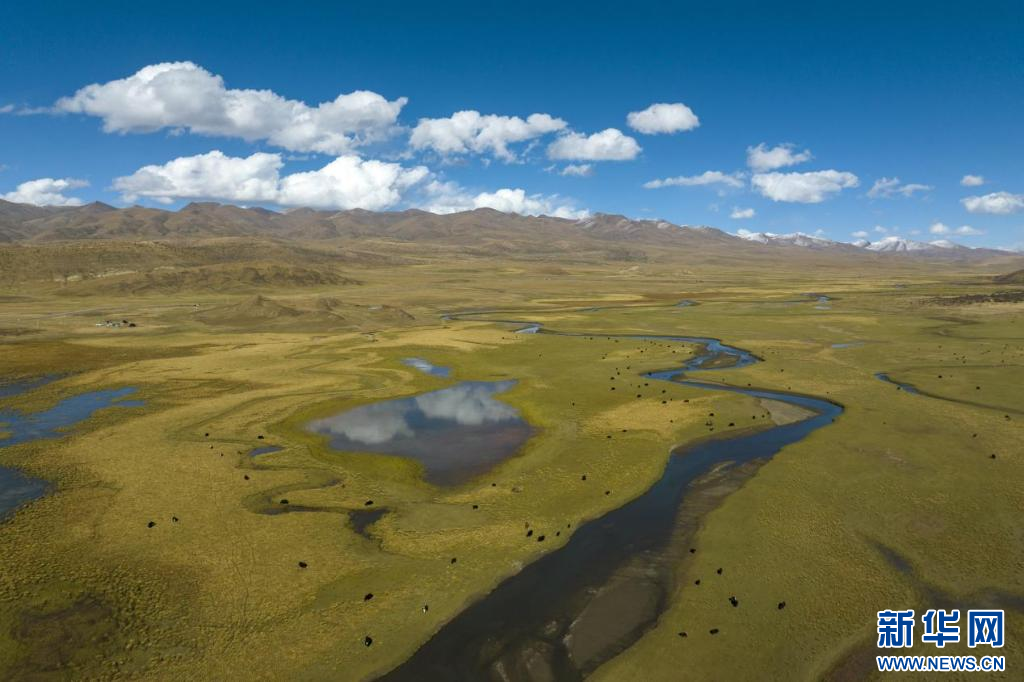在西藏措美縣境內(nèi)拍攝的牦牛(無人機(jī)照片)。新華網(wǎng) 旦增努布 攝