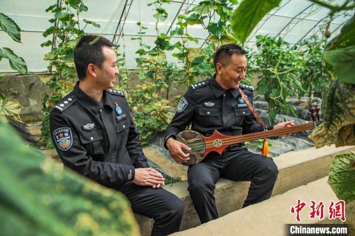 圖為西藏阿里門(mén)士邊境派出所民警在溫室大棚內(nèi)彈奏扎念琴。龍小鳳 攝