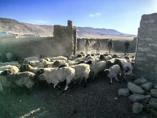 太陽翻過雪山,灑滿西藏日喀則市崗巴縣崗巴鎮(zhèn)雪村的大地時,穿著羊皮袍子、皮膚黝黑的扎西多杰準時打開了圈門。隨著此起彼伏的“咩咩咩”聲,羊群就像開閘的洪水般傾瀉而出,踏出滾滾塵煙。