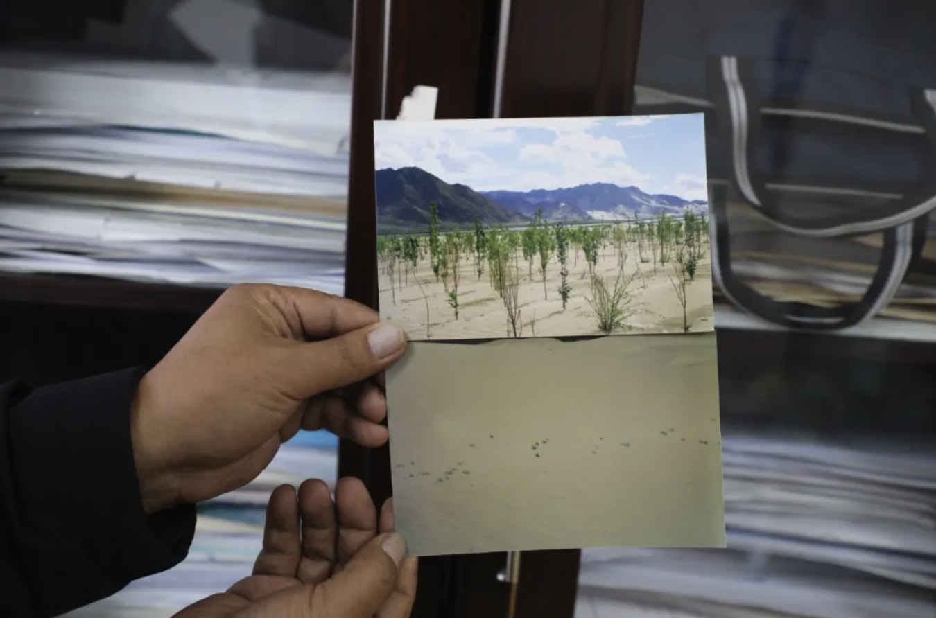 “過去,扎囊縣扎其鄉(xiāng)德吉新村一帶公路兩旁全是沙丘,風(fēng)一吹,路過的車輛經(jīng)常陷進(jìn)沙里無法行駛。”