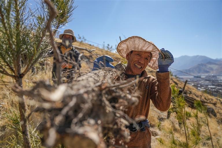 像旦增頓珠這樣依靠種樹增收的群眾還有很多。全區(qū)各級政府始終把促進群眾就業(yè)增收作為工程建設(shè)的出發(fā)點和落腳點,通過吸納群眾參與造林綠化,引導(dǎo)企業(yè)采購群眾苗木、租用機械等方式,帶動增收近18.6億元,惠及農(nóng)牧民群眾約500萬人次,努力將綠水青山、冰天雪地的“顏值”轉(zhuǎn)化為金山銀山的價值。