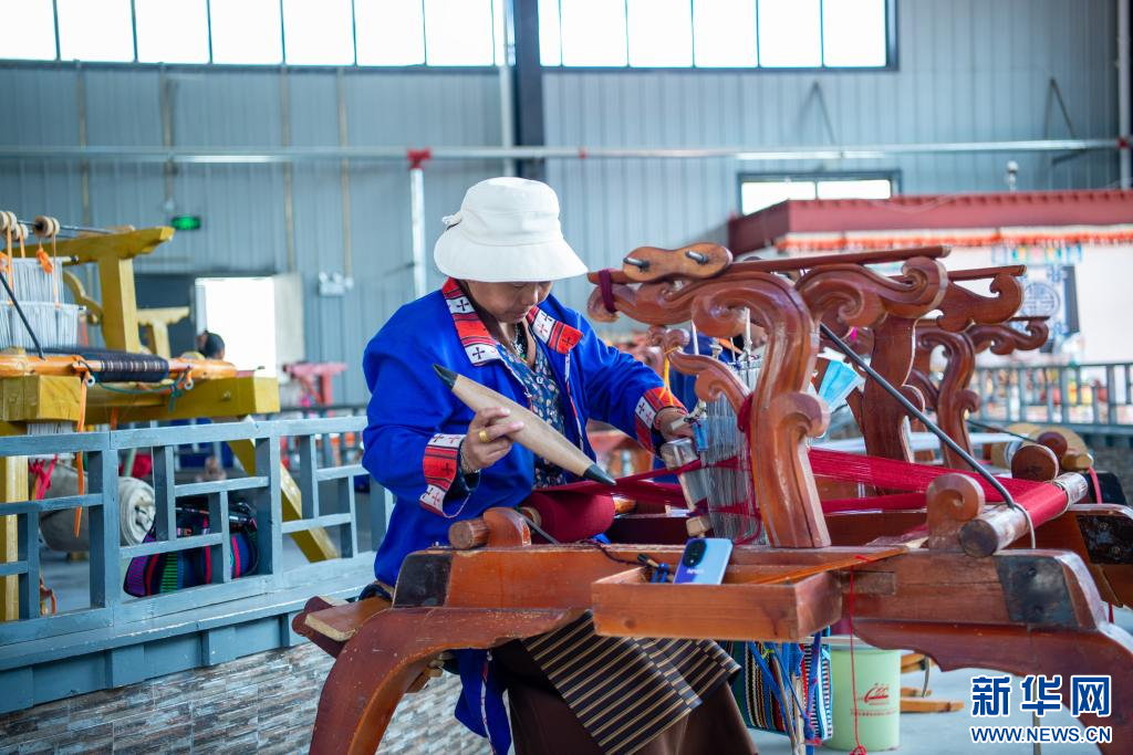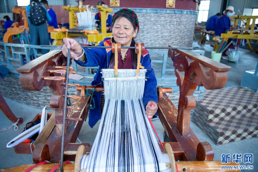 6月24日,合作社員工在編織“澤帖爾”。新華網(wǎng) 旦增努布 攝
