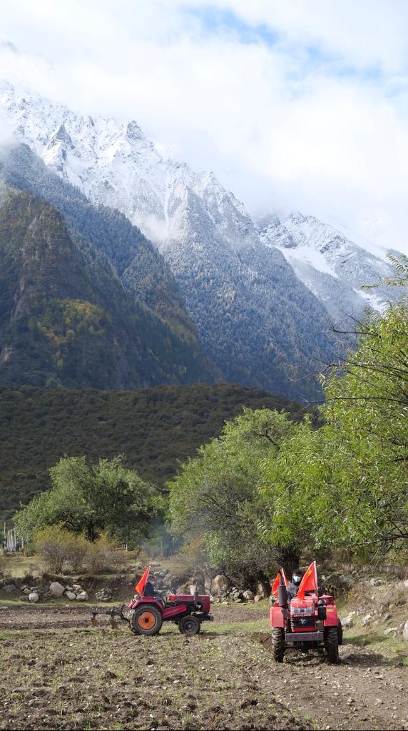 每年10月,是西藏那曲市嘉黎縣尼屋鄉(xiāng)播種冬小麥的時(shí)節(jié)。忠玉村村民索朗益西和鄉(xiāng)親們開著拖拉機(jī)翻土備耕。