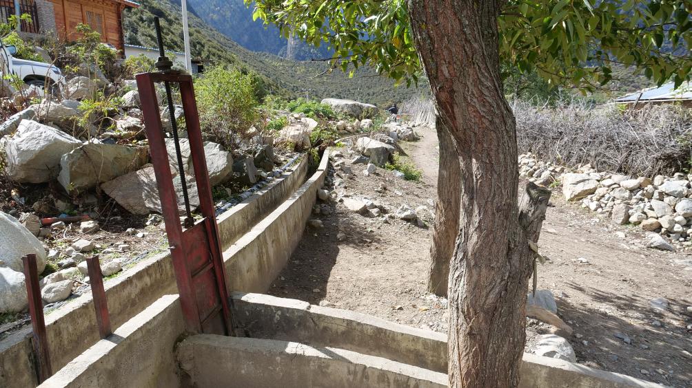 當(dāng)?shù)毓喔人词茄┥饺谒?。尼屋鄉(xiāng)農(nóng)牧綜合服務(wù)中心主任扎西次旺介紹,高標(biāo)準(zhǔn)農(nóng)田建設(shè)前,鄉(xiāng)民一直沿用先民修的老水渠。