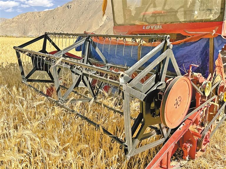 收割機(jī)在江孜青稞田里作業(yè)。通訊員 代旭 攝