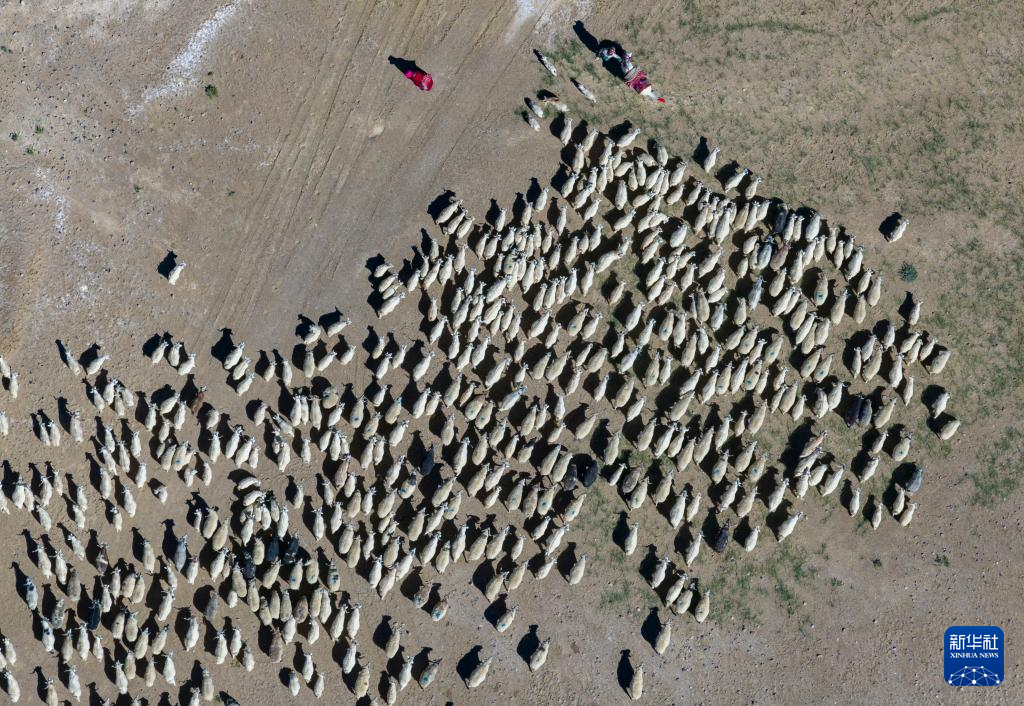 日土縣牧民在放牧白絨山羊(無(wú)人機(jī)照片,2023年9月21日攝)。新華社記者 姜帆 攝