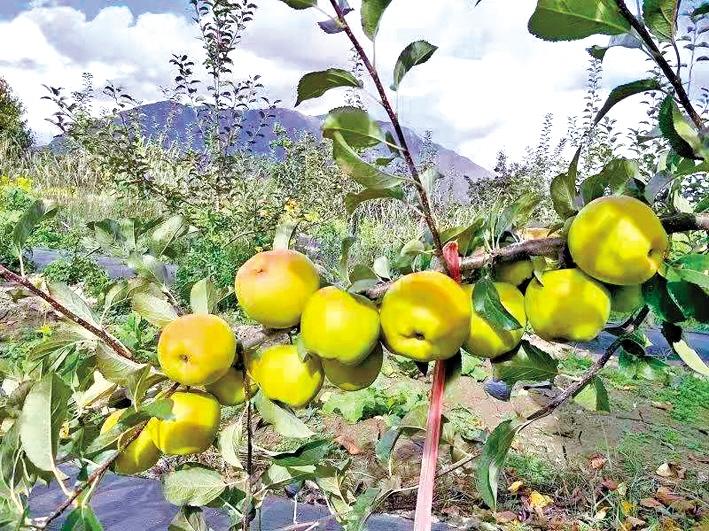林芝農(nóng)墾嘎瑪農(nóng)業(yè)有限公司果園里結(jié)出的蘋果。 圖片由格桑群培提供