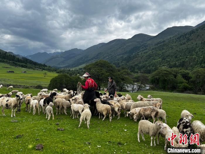 央宗措姆與媽媽七林央宗在星沾牧場(chǎng)照看綿羊。時(shí)文枝 攝