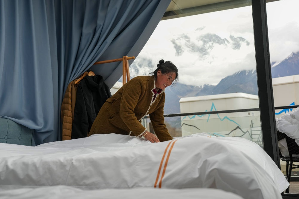 2025年4月4日,林芝索松村一家民宿的服務(wù)員在整理房間。近年來,林芝在生態(tài)保護(hù)與旅游發(fā)展的良性互動(dòng)中,探索出“賞花+民宿”“賞花+文創(chuàng)”等復(fù)合經(jīng)營(yíng)模式。2025年4月4日至4月6日期間,林芝市累計(jì)接待游客20.86萬(wàn)人次,同比增長(zhǎng)20.58%;實(shí)現(xiàn)旅游收入1.5億元,同比增長(zhǎng)37.62%。