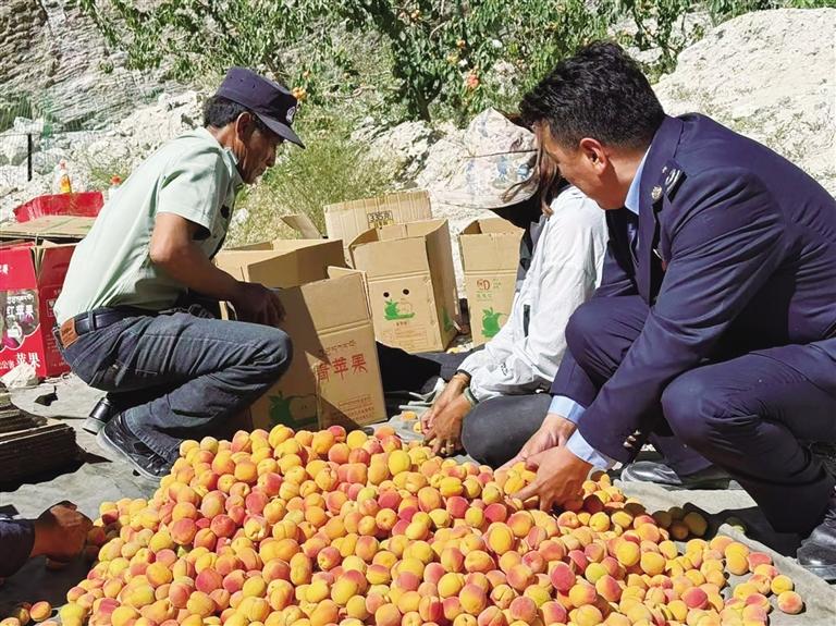 七月的底雅鄉(xiāng),昆侖山的融雪順著溝壑淌進(jìn)果園,滋潤(rùn)著枝頭累累碩果。阿里地區(qū)稅務(wù)局駐丁固村工作隊(duì)將紅色宣傳旗插在鄰村什布奇村的杏林邊,與金燦燦的果實(shí)相映成趣。駐村隊(duì)員們和村民們一同蹲在田埂上,他們圍繞特色林果業(yè)發(fā)展這一主題,用通俗易懂的方式講解稅費(fèi)政策,讓村民們聽(tīng)得懂、記得住、用得上。