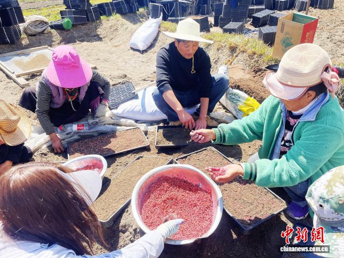 資料圖為3月27日范春捆(右二正面)在林芝察隅縣沙瑪村指導村民水稻播種 中新社發(fā) 范春捆供圖