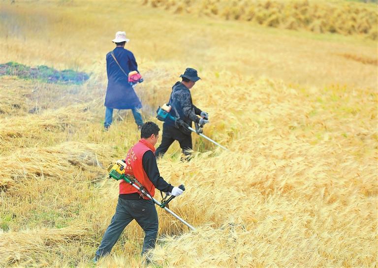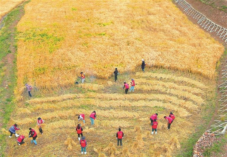 9月2日,昌都市丁青縣色扎鄉(xiāng)組織23名黨員干部組成幫扶小隊,開展秋收助農(nóng)志愿服務(wù)。在田間地頭,黨員干部們分工協(xié)作,有條不紊地進(jìn)行收割、搬運(yùn)、晾曬,幫助卡通村缺乏勞動力的家庭搶收農(nóng)作物。