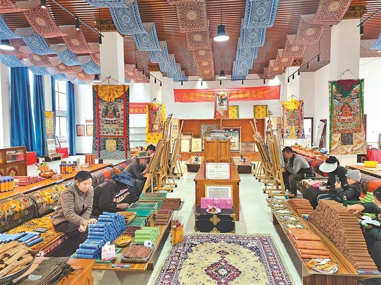 在政府持續(xù)的政策扶持、資源對(duì)接和市場(chǎng)推廣助力下,合作社發(fā)展態(tài)勢(shì)良好,銷售渠道變寬,有效激活了桑珠榮村的發(fā)展?jié)撃?。目前,合作社共有成員12人,其中6名是唐卡畫(huà)師,6名專職制作藏香。通過(guò)唐卡創(chuàng)作與藏香加工,合作社已實(shí)現(xiàn)盈利27萬(wàn)余元,不僅直接解決了12名村民的穩(wěn)定就業(yè)問(wèn)題,還為桑珠榮村贏得了“唐卡與藏香傳承第一村”的美譽(yù),成為當(dāng)?shù)匚幕x能鄉(xiāng)村振興的典范。