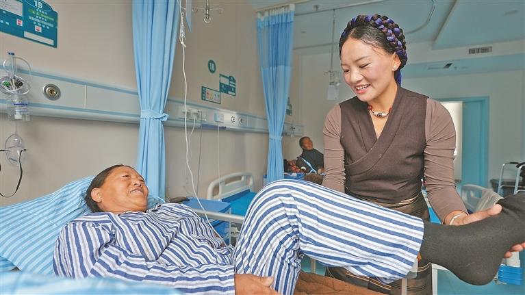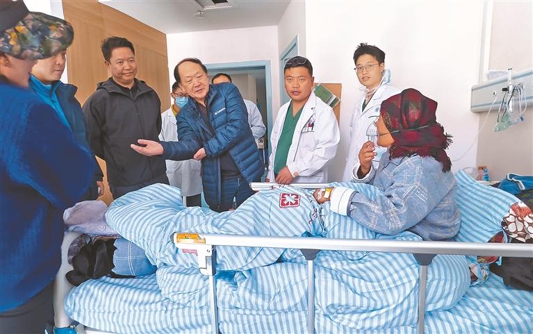 圖為南京市第一醫(yī)院關(guān)節(jié)外科專家團隊了解患者術(shù)后康復(fù)情況。記者 格桑倫珠 攝