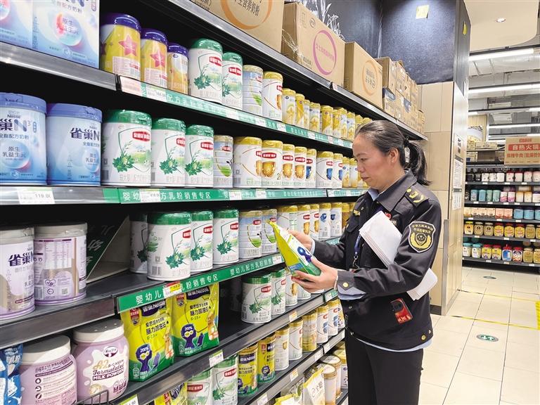 執(zhí)法人員對(duì)永輝超市(城關(guān)萬達(dá)廣場(chǎng)店)嬰幼兒配方乳粉進(jìn)行檢查。