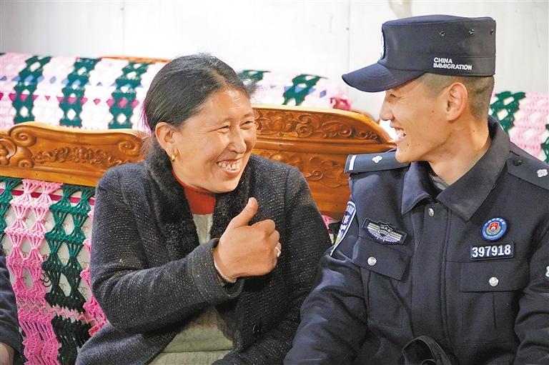 圖為轄區(qū)群眾群宗為玉麥邊境派出所民警的貼心服務點贊。