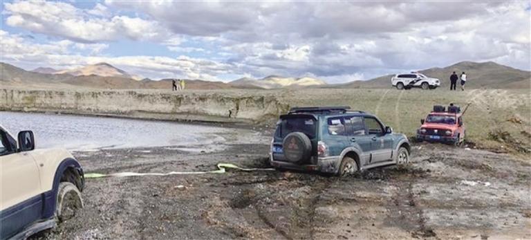 三輛車均陷入泥沼。圖由阿里地區(qū)公安處提供