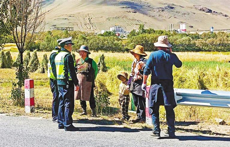 圖①②:民警在田間地頭為群眾講解交通安全知識(shí)。記者 旦增嘎瓦 攝