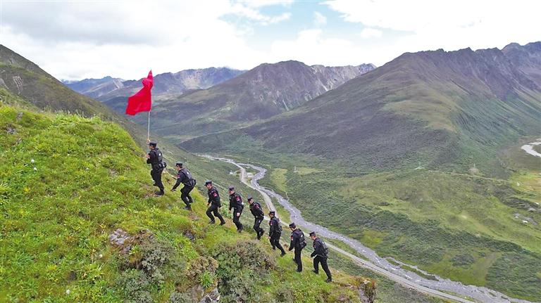 聯(lián)合巡邏隊(duì)成員在巡邏途中。本報(bào)通訊員 索朗扎西 攝