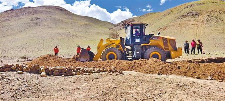 駐措勤縣達雄鄉(xiāng)才扎村工作隊為群眾維修秋季轉場道路。 記者 永青 通訊員 旦增尼瑪 王飛洋 攝