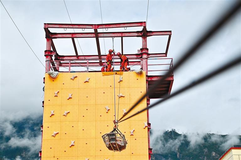 開展斜向救援技術訓練。本報通訊員 西繞拉翁 記者 謝筱純 王珊 攝