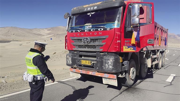 交警對(duì)過往車輛進(jìn)行檢查。圖由自治區(qū)交管局提供