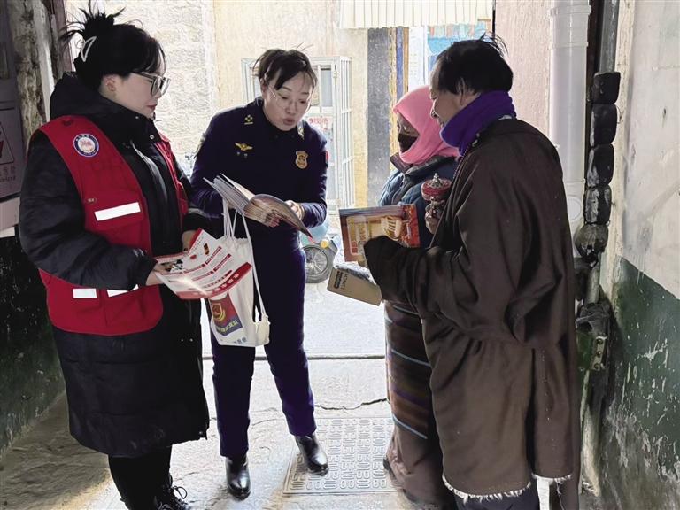 拉薩市消防救援支隊各級依托消防宣傳“六進”工作,以“敲門入戶”為抓手,瞄準自建房、老舊小區(qū)、托兒所、獨居老人群體等重點領(lǐng)域和人群,積極發(fā)動消防志愿服務(wù)隊、基層網(wǎng)格員開展消防安全宣傳,通過發(fā)放宣傳資料、理論講解、案例分析、實地隱患排查等方式,教育引導(dǎo)群眾掌握常見火災(zāi)預(yù)防、安全用火用電用氣、安全燃放煙花爆竹、火場自救逃生等消防安全常識,提高其發(fā)現(xiàn)隱患、整改隱患的技能。