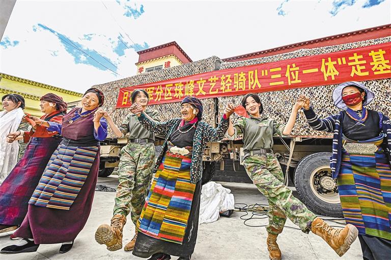 珠峰文藝輕騎隊(duì)隊(duì)員精心準(zhǔn)備了13個(gè)節(jié)目,并反復(fù)彩排,不斷打磨,旨在表達(dá)對(duì)戍邊官兵無(wú)私奉獻(xiàn)的崇高敬意,為駐地百姓帶去歡聲笑語(yǔ),凝聚軍心、鼓舞士氣,匯聚起強(qiáng)軍興軍的磅礴力量。