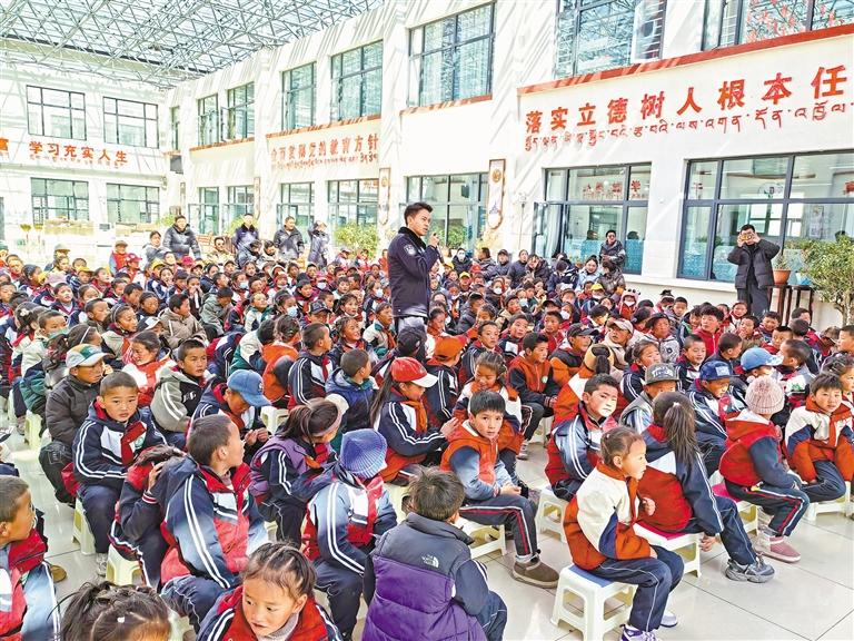 “辦理邊境通行證需要哪些材料?”“遭遇家暴、校園霸凌該怎么求助?”在堆納鄉(xiāng)中心小學(xué)的法治課堂上,民警澤成朗加正為孩子們講解未成年人保護(hù)法。這是該所“八五”普法宣傳的生動(dòng)一幕。