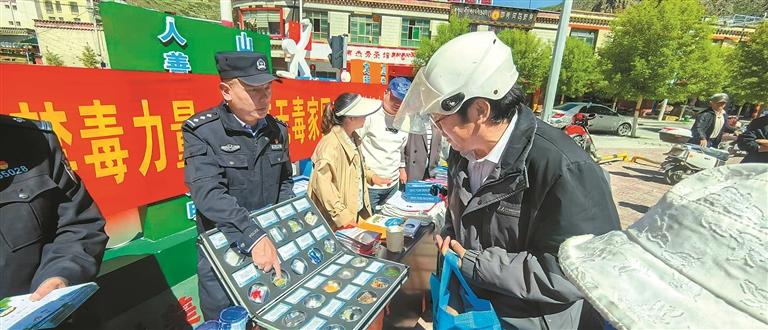 圖為比如縣公安局法制科民警在街頭開展禁毒宣傳。本報記者 彭琦 攝