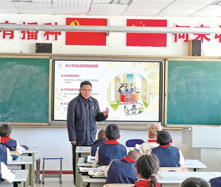 圖為色尼區(qū)法院干警在學(xué)校講法治課。記者 彭琦 攝
