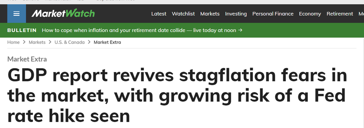 美國(guó)商業(yè)內(nèi)幕網(wǎng)站26日?qǐng)?bào)道稱,這份經(jīng)濟(jì)數(shù)據(jù)對(duì)美國(guó)來(lái)說(shuō)是個(gè)壞消息,因?yàn)榻?jīng)濟(jì)增長(zhǎng)乏力和價(jià)格上漲是滯脹的關(guān)鍵因素。滯脹的特征是經(jīng)濟(jì)萎靡不振,通脹長(zhǎng)期居高不下。這種情況可能比經(jīng)濟(jì)衰退更難應(yīng)對(duì),因?yàn)槊缆?lián)儲(chǔ)的手腳基本上已被束縛住。